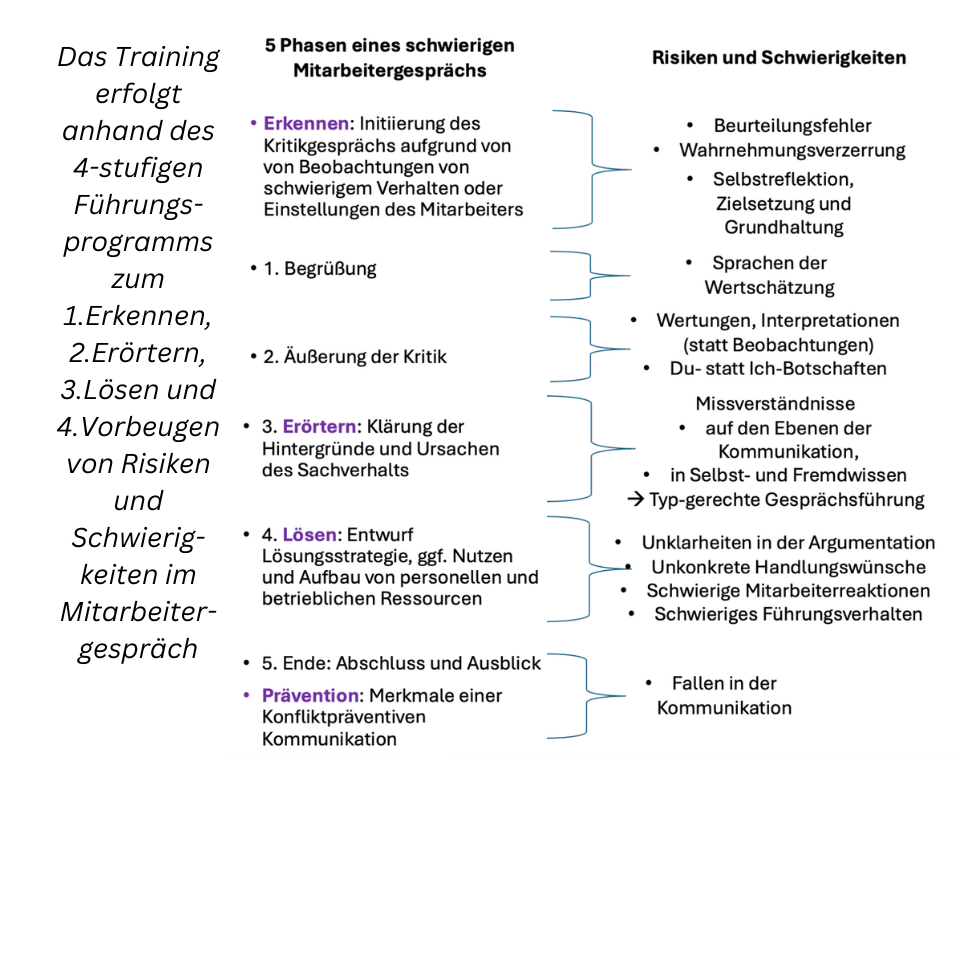 - Empathische und lösungsorientierte Gesprächsführung im Kritikgespräch mit schwierigen Mitarbeitern anhand von Fallbeispielen